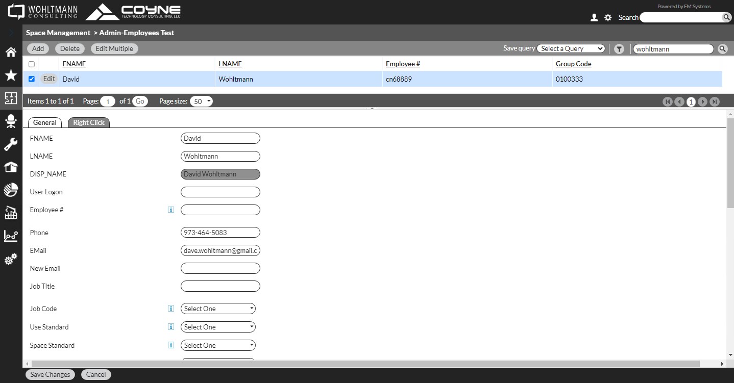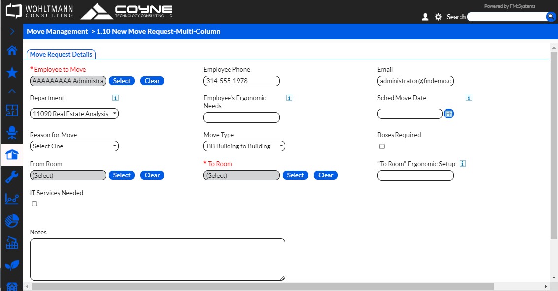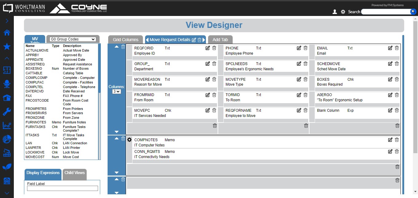 For years, clients have been requesting a better user experience from FMS:Workplace.  Asking for the ability to customize logos, change color schemes, add multiple columns to forms/views, make it easier to get to floor plan drawings, etc.  That is why Wohltmann Consulting and Coyne Technology Consulting have teamed up and created the FMS:Workplace Designer Module.  The Designer Module is an extensibility product that is 100% focused around enhancing the overall FMSW experience for every single user.  The Designer Module gives clients complete control of the look and feel of FMSW without any customization.